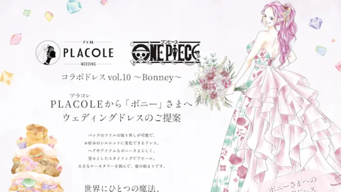 A empresa japonesa PLACOLE WEDDING revelou a décima criação de sua coleção de vestidos de noiva inspirados em One Piece.