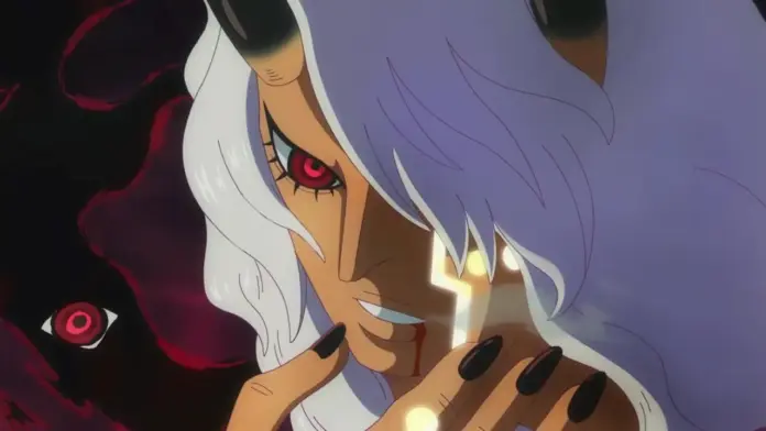 - Imu então cria uma pequena chama negra chamada “Presságio” e a lança no rosto de Zoro, deixando o rosto dele ensanguentado.