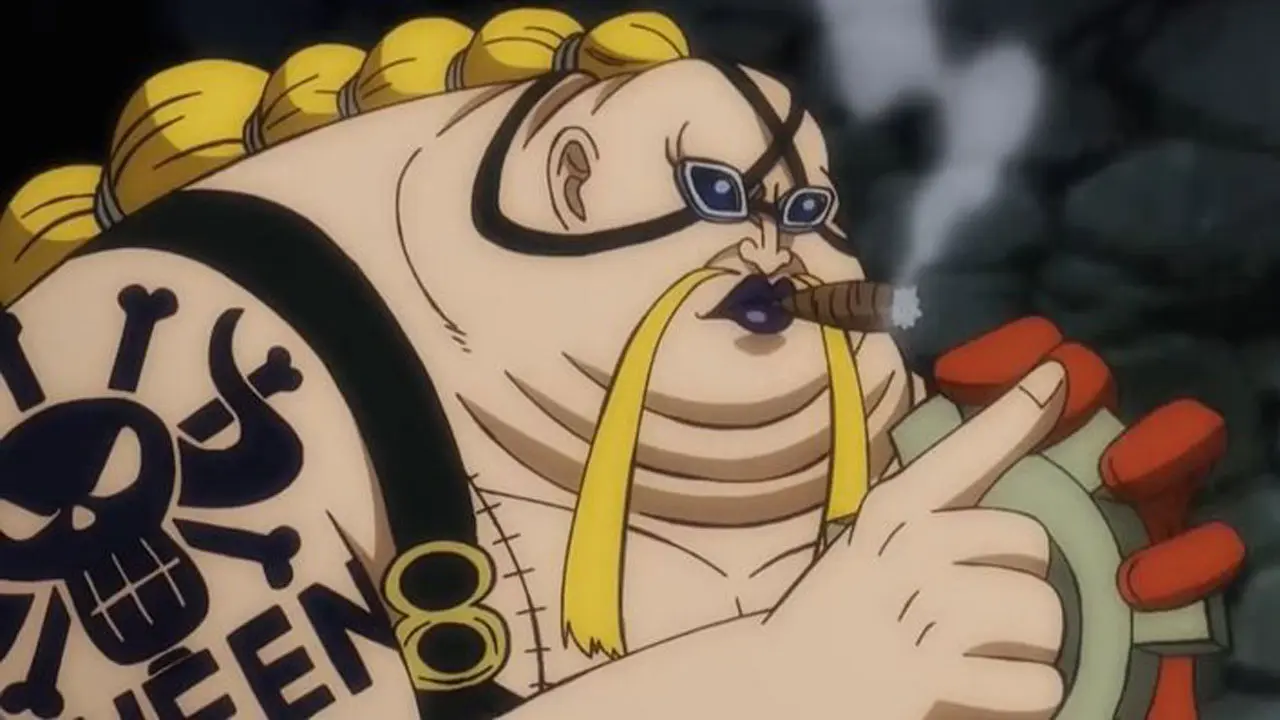 Queen é um “All Star” dos Piratas da Fera e um dos três homens mais fortes de Kaidou. Ele é usuário da Ryu Ryu no Mi, Modelo: Brachiosaurus, a fruta do diabo do tipo Zoan Ancestral do Braquiossauro._x000D_